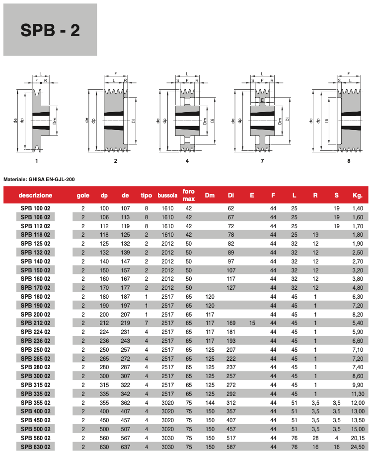 PULEGGE A GOLE TRAPEZOIDALI PER BUSSOLA CONICA SPB - 8